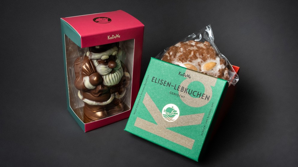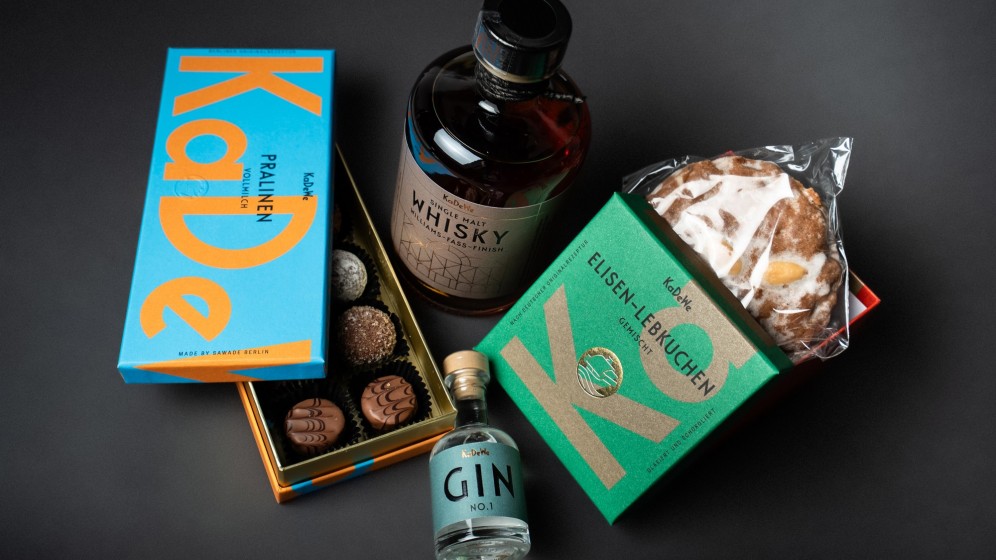 In 2023, KaDeWe asked me to pick up the thread from Studio Chapeaux’ design works for their own line of food products. I am pleased to report that I have successfully introduced a diverse range of products to the store. This includes elegantly packaged bonbons, truffles, crémant, rosé wine, prosecco, gummy bears, honey, olive oil, coffee, gin – with many more exciting additions on the horizon! You can discover these offerings throughout KaDeWe's cherished 6th floor.